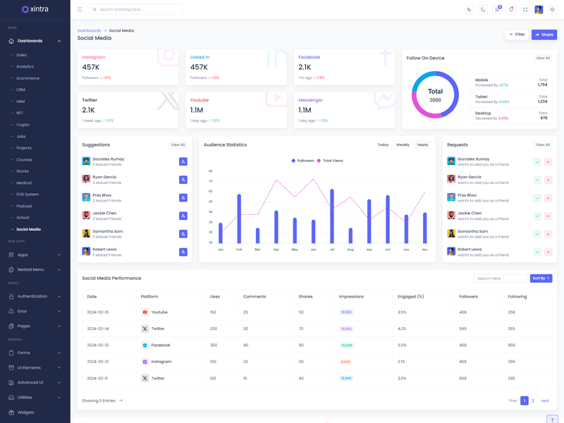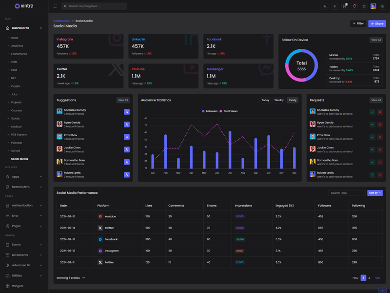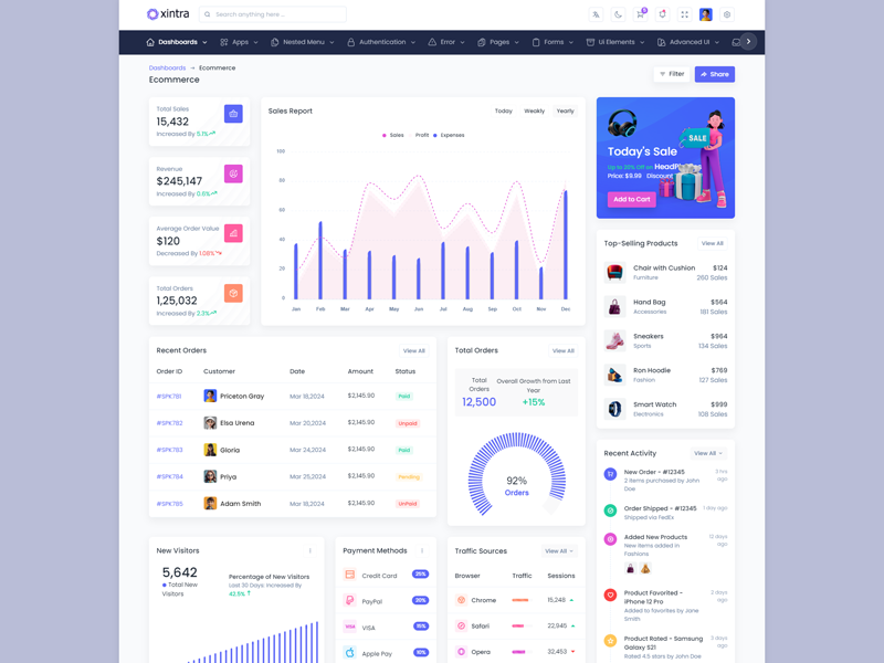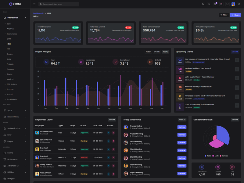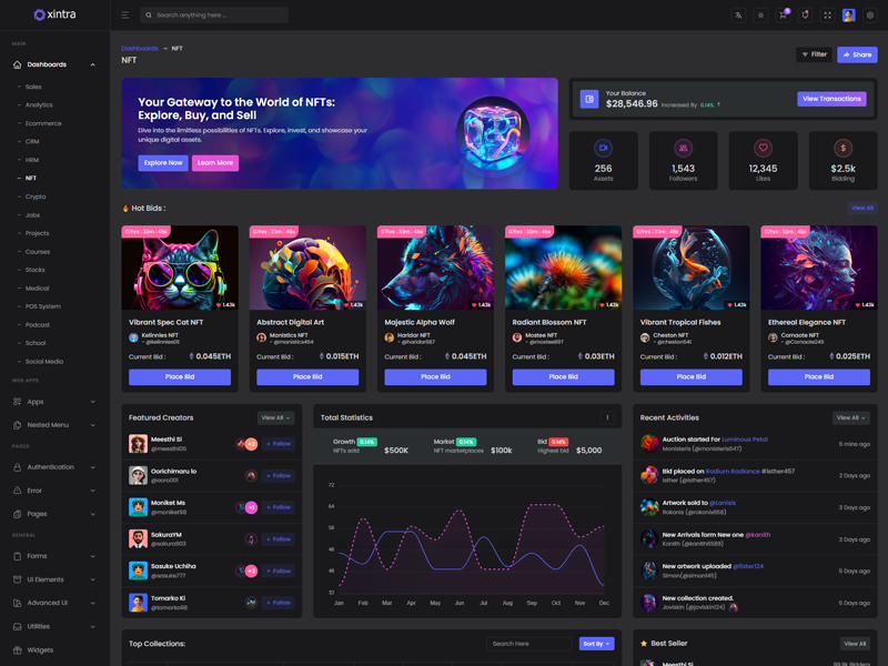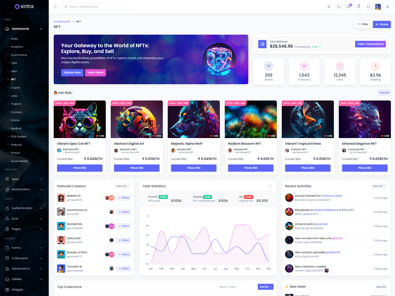 Explore the latest trending features incorporated into the Xintra Codeigniter Admin template, showcasing how we have enhanced and designed our template. When it comes to design, we always keep a close watch on the most trending features.