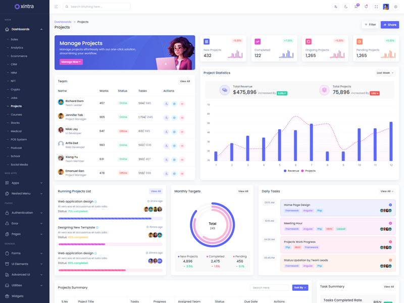 Take a look at the numerous versions we've integrated into the Xintra Codeigniter Bootstrap 5 Premium Admin and Dashboard Template, where you can customize it in countless ways.