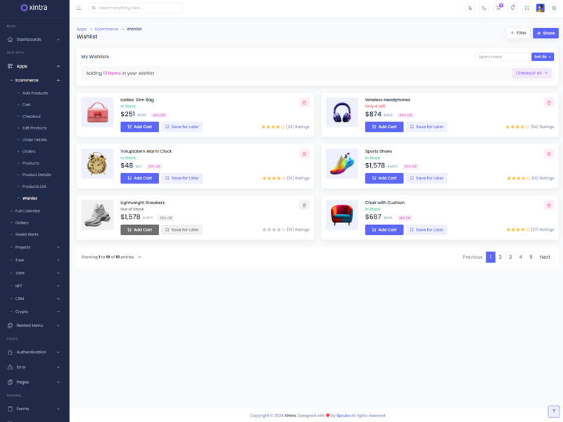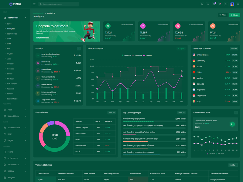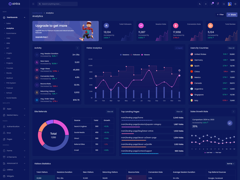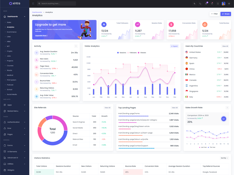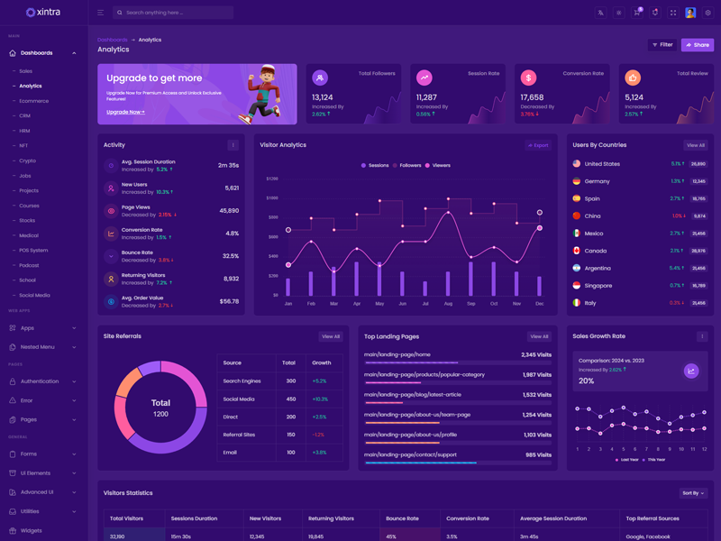 Xintra - Codeigniter Premium Bootstrap 5 Admin & Dashboard Template boasts essential features such as design quality, compatibility with your front-end framework, responsiveness, ease of customization, comprehensive documentation, and dedicated support. Additionally, it includes integrated plugins and other supplementary features.