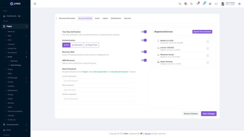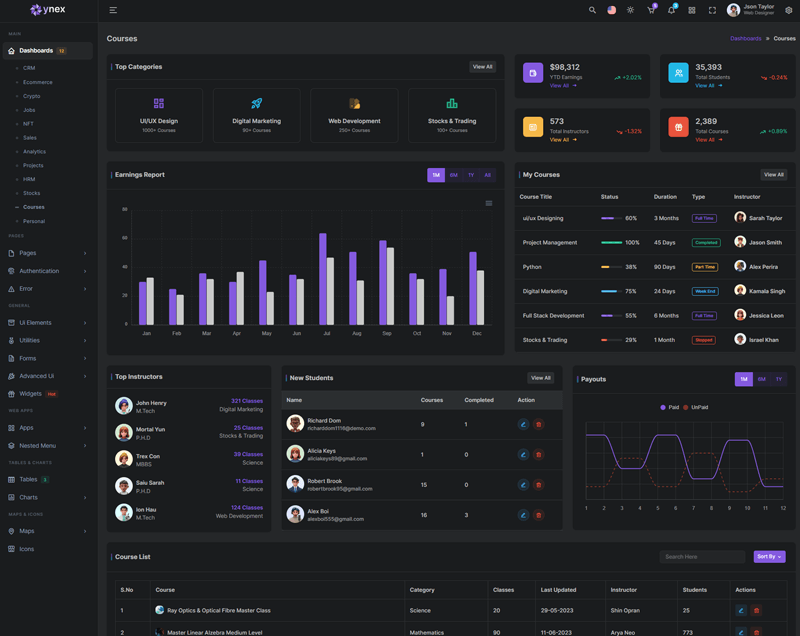 Here are some of the pages in Ynex Codeigniter admin template ui design, no need of additional customization required, designed perfectly for ready to use template.
