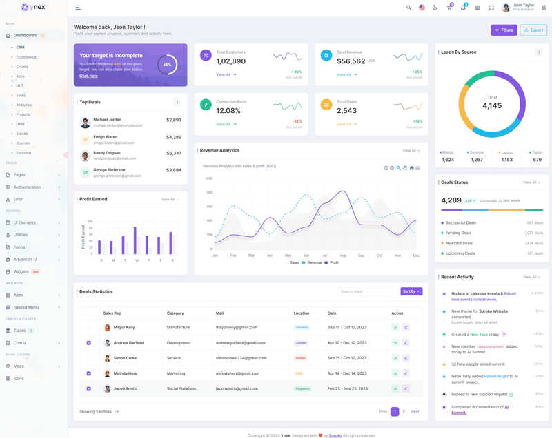 Ynex Codeigniter admin template comes with ready to use features. It has lots of ready-made features saves more time for developers.